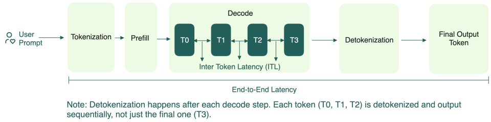 - TPOT(Time Per Output Token):指所有输出 token 的平均生成时间,有时也称为 ITL(Inter-Token Latency),反映整体生成效率。